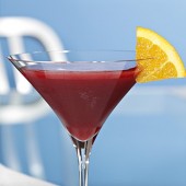 - Step 2: To make the cocktails – Shake the vodka, liqueur, blackberry purée, lime juice and bitters with ice cubes until a thin layer of frost appears on the outside of the shaker. Strain into martini glasses. Garnish with an orange slice and serve immediately.